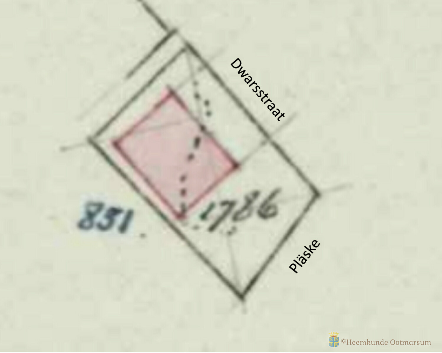Tot 1878 lag hier een tuin met het kadastrale nummer A851. Tot 1854 was het eigendom van de timmerman Joannes Hofland (1772-1832) en zijn vrouw Maria van der Ham (1775-1838). Zij woonden zelf in de woning die daarnaast lag: Grotestraat 7. In 1854 werd de tuin verkocht aan de advocaat Hendrik Bloemen (1788-1859). Hendrik Bloemen was geboren aan de overkant aan de Dwarsstraat 3. Beide percelen werden daarna gekocht door de winkelier Marcus Meijer Cantor (1800-1860). Na zijn overlijden in 1860 erfde de minderjarige dochter Lea (1851-1915) de beide percelen.